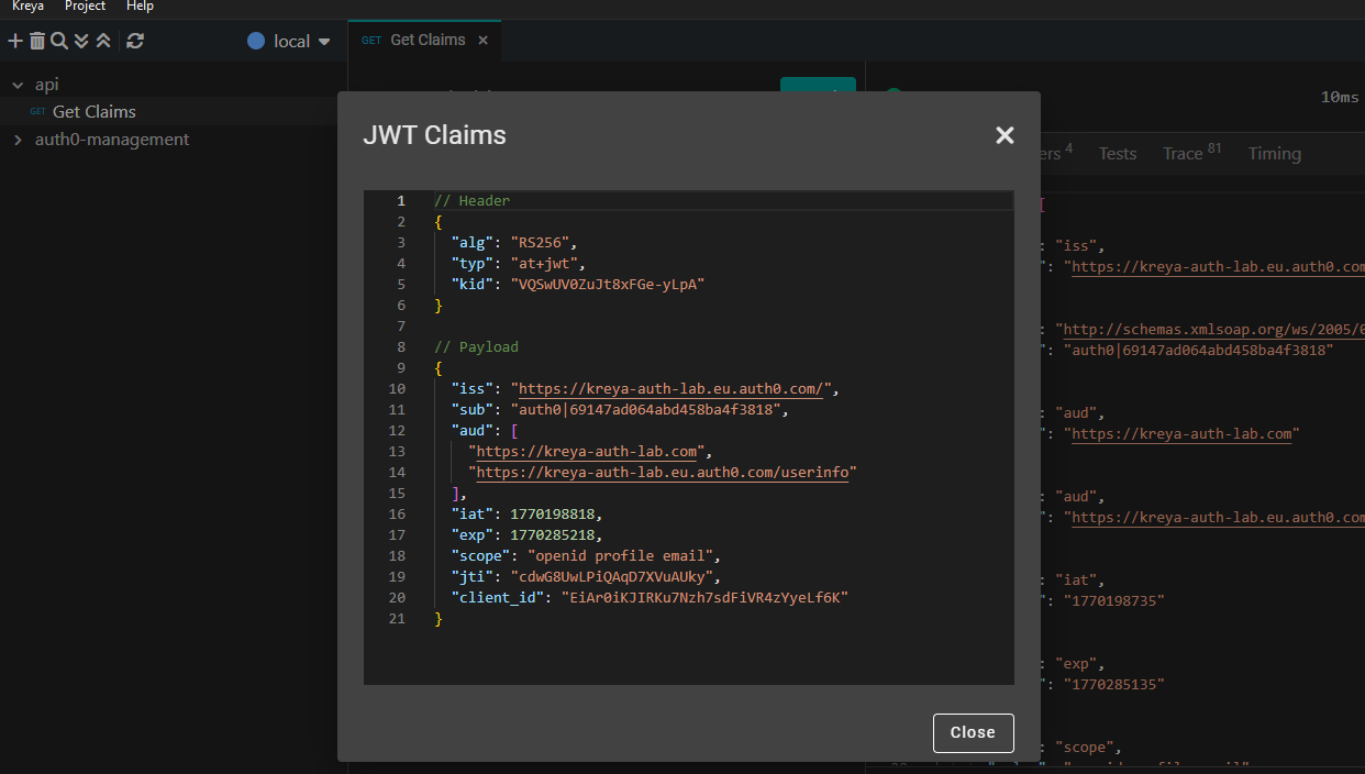 Calling Auth0 Secured APIs with Kreya